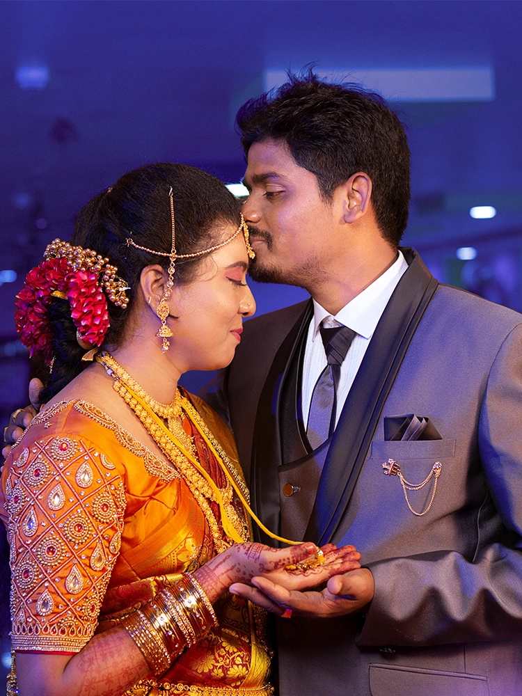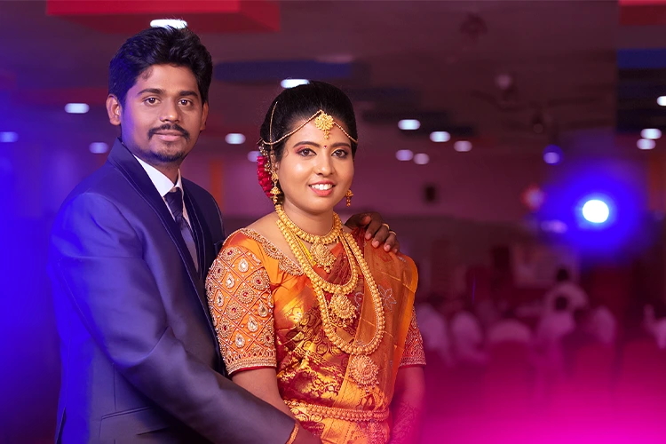 A perfect example of our reception photography style—colourful, emotional, and timeless, crafted for couples in Thiruchitrambalam.